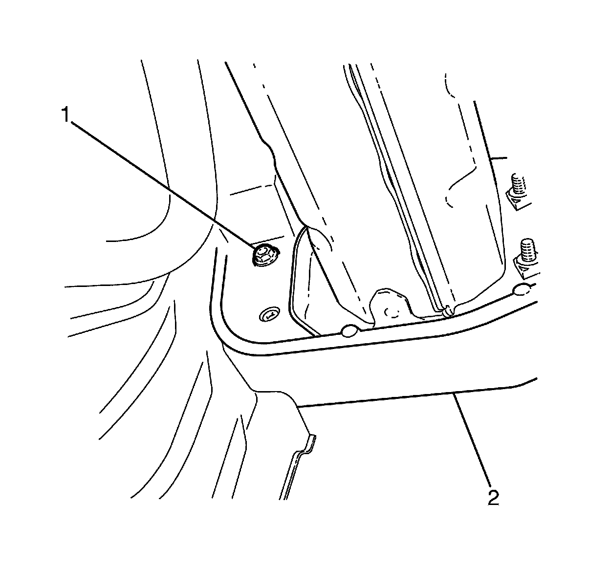 1.Remove the front bumper impact bar to front end module retaining bolt (1). Repeat for opposite side.
