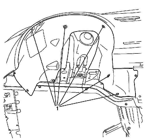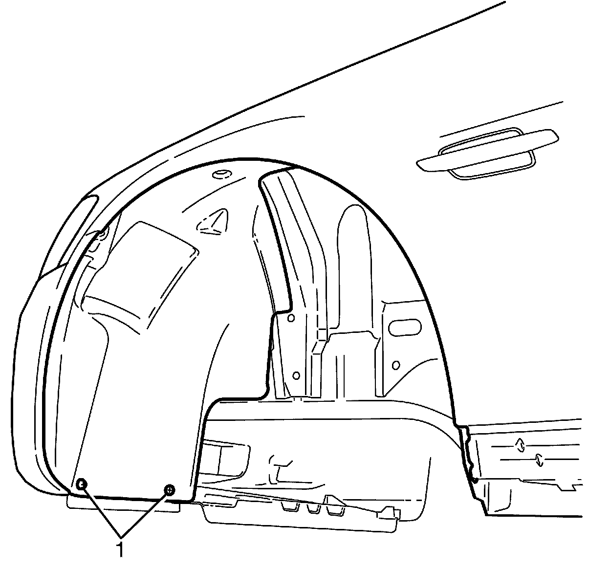 2. Install the front wheelhouse liner to wheelhouse retaining scrivets (1).