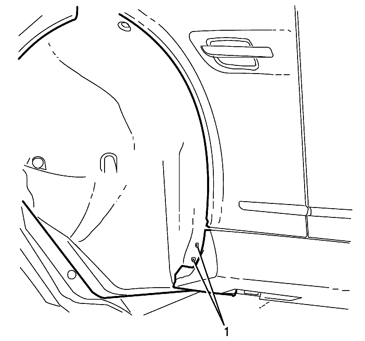 3. Install the front wheelhouse liner to rocker panel retaining screws (1).