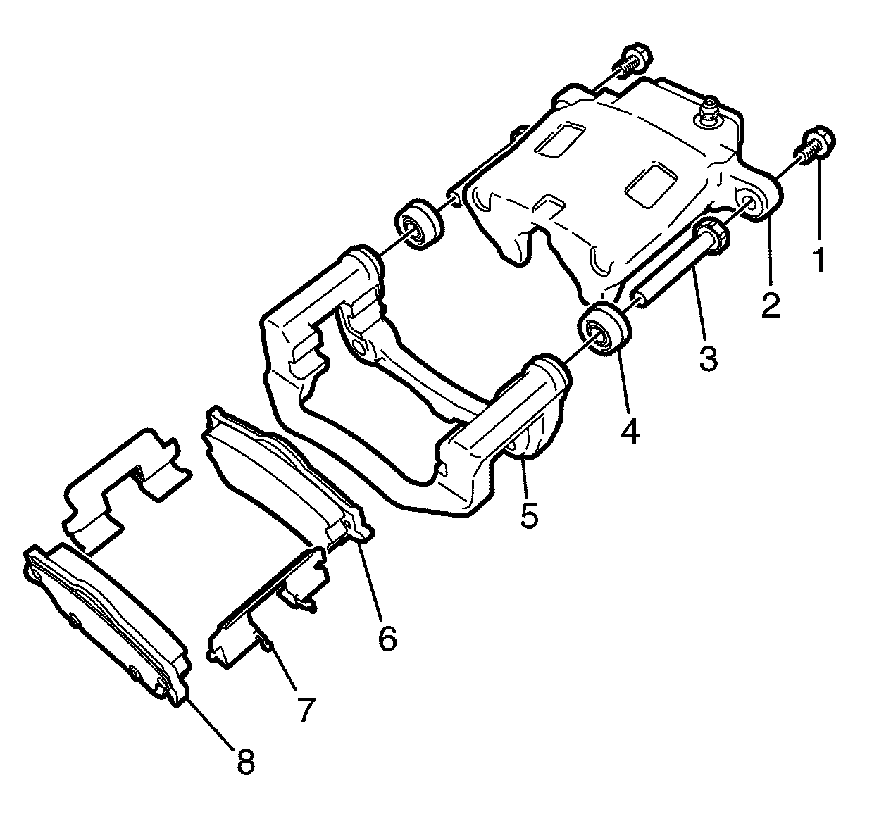 3. Remove the guide pin retaining bolts (1).