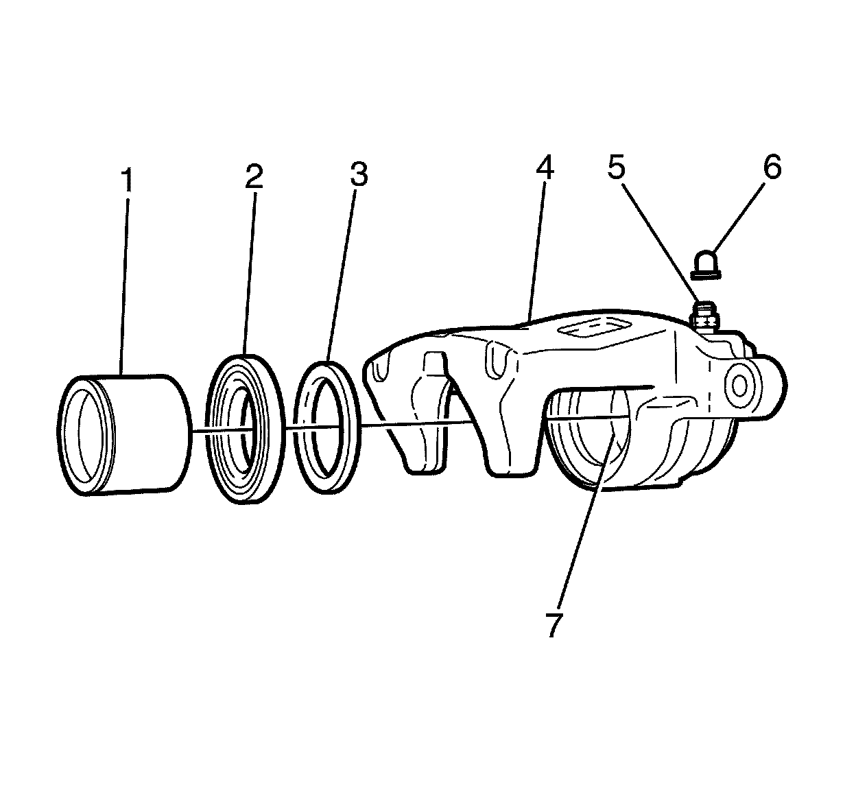 2. Install the brake caliper bleeder valve cap (7) to the brake caliper bleeder valve (6).