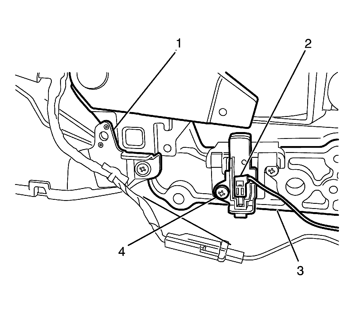 3. Remove the park brake warning lamp switch to park brake lever assembly retaining screw (4).