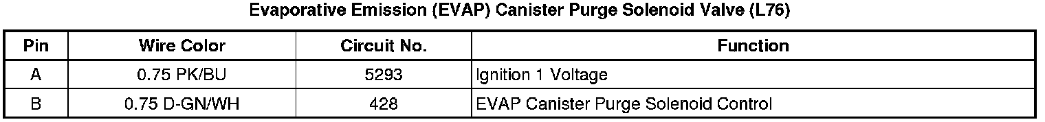 Evaporative Emission (EVAP) Canister Purge Solenoid Valve (L76 - Gas 8 Cyl, 6.0L SFI, V8)