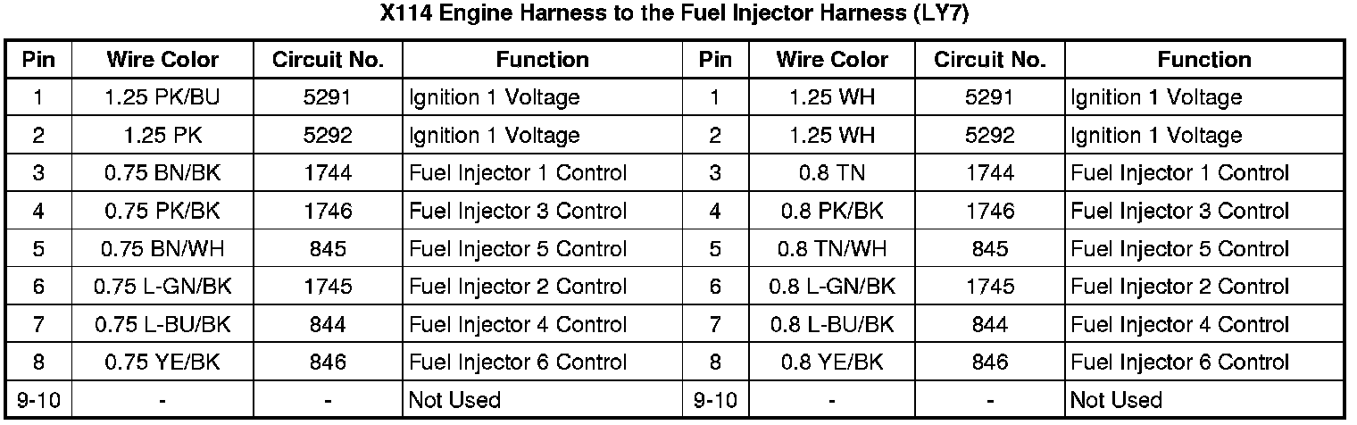 X114 Engine Harness to the Fuel Injector Harness (LY7 - Gas, 6 Cylinder, 3.6L, SFI, V6)