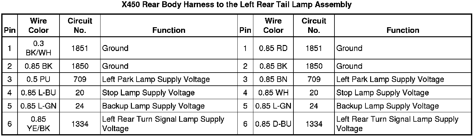 X450 Rear Body Harness to the Left Rear Tail Lamp Assembly