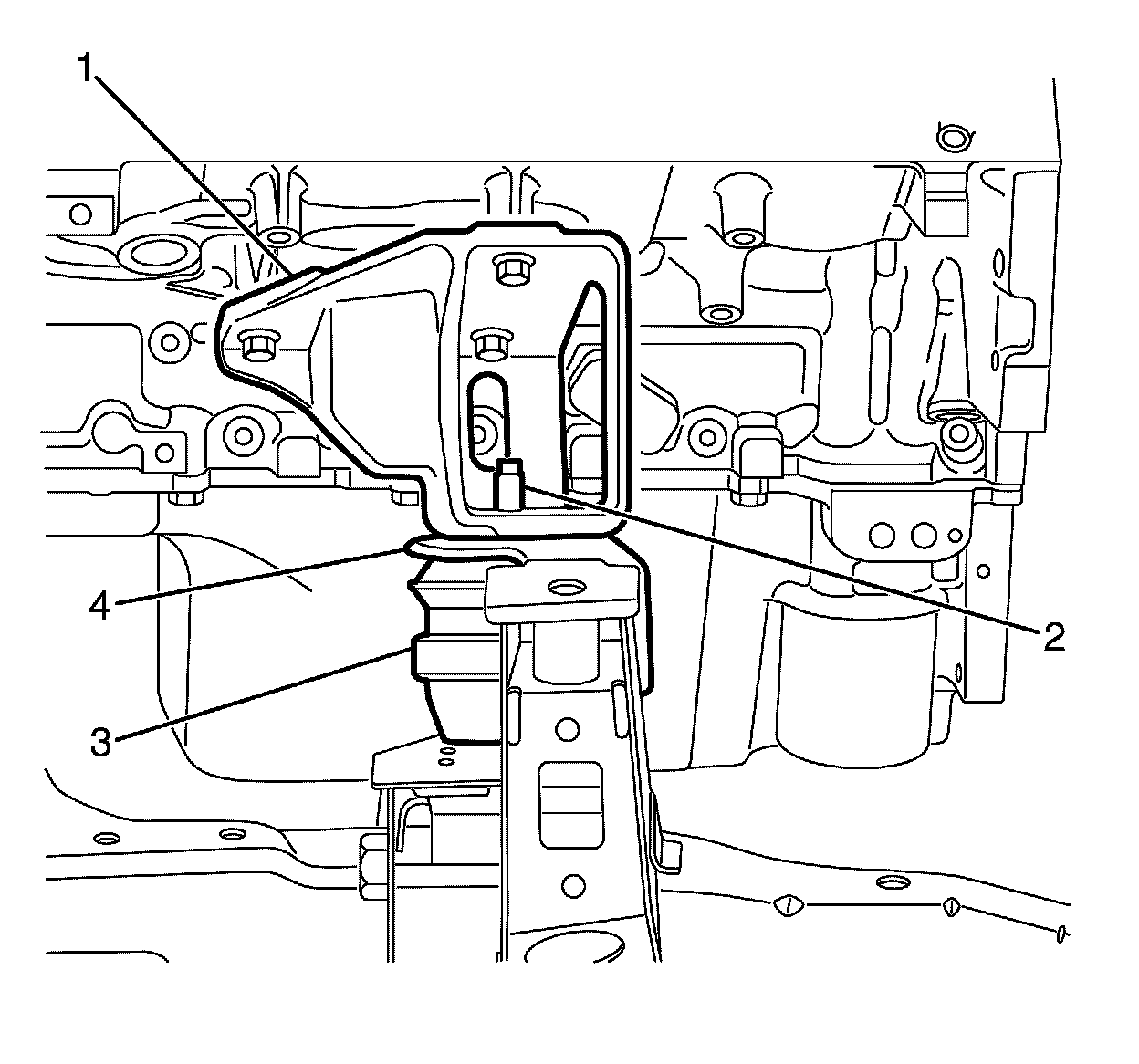 Important: DO NOT bend or distort the right side engine mount heat shield (4).