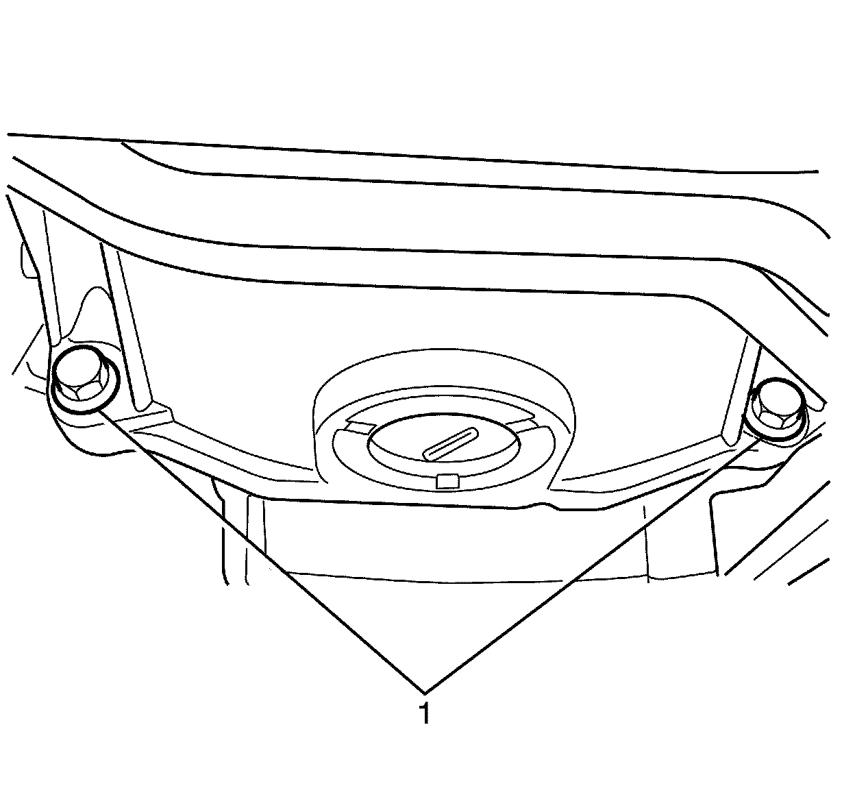 17. Remove the transmission to oil pan retaining bolts (1).