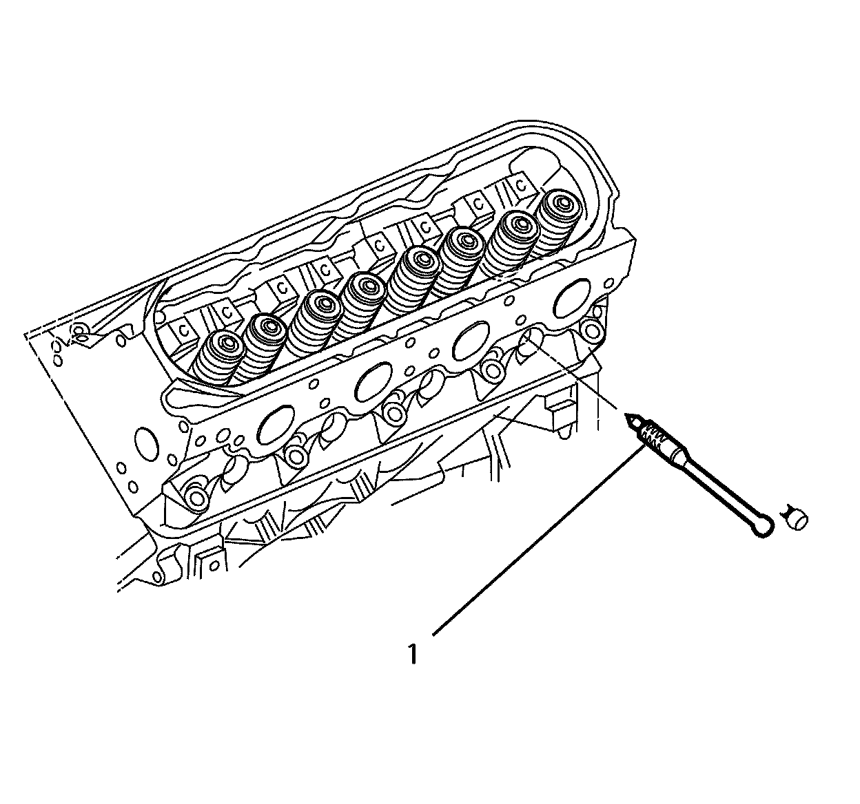 4. Install the J 22794 (1) or equivalent into the spark plug hole of the cylinder being serviced.