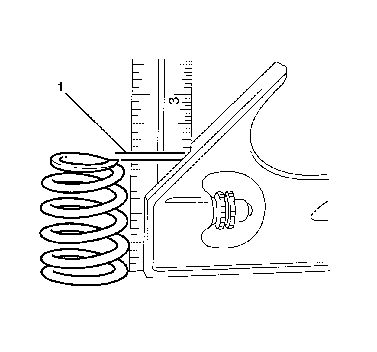 7. Use J 38606 (1) in order to compress the valve spring (3).