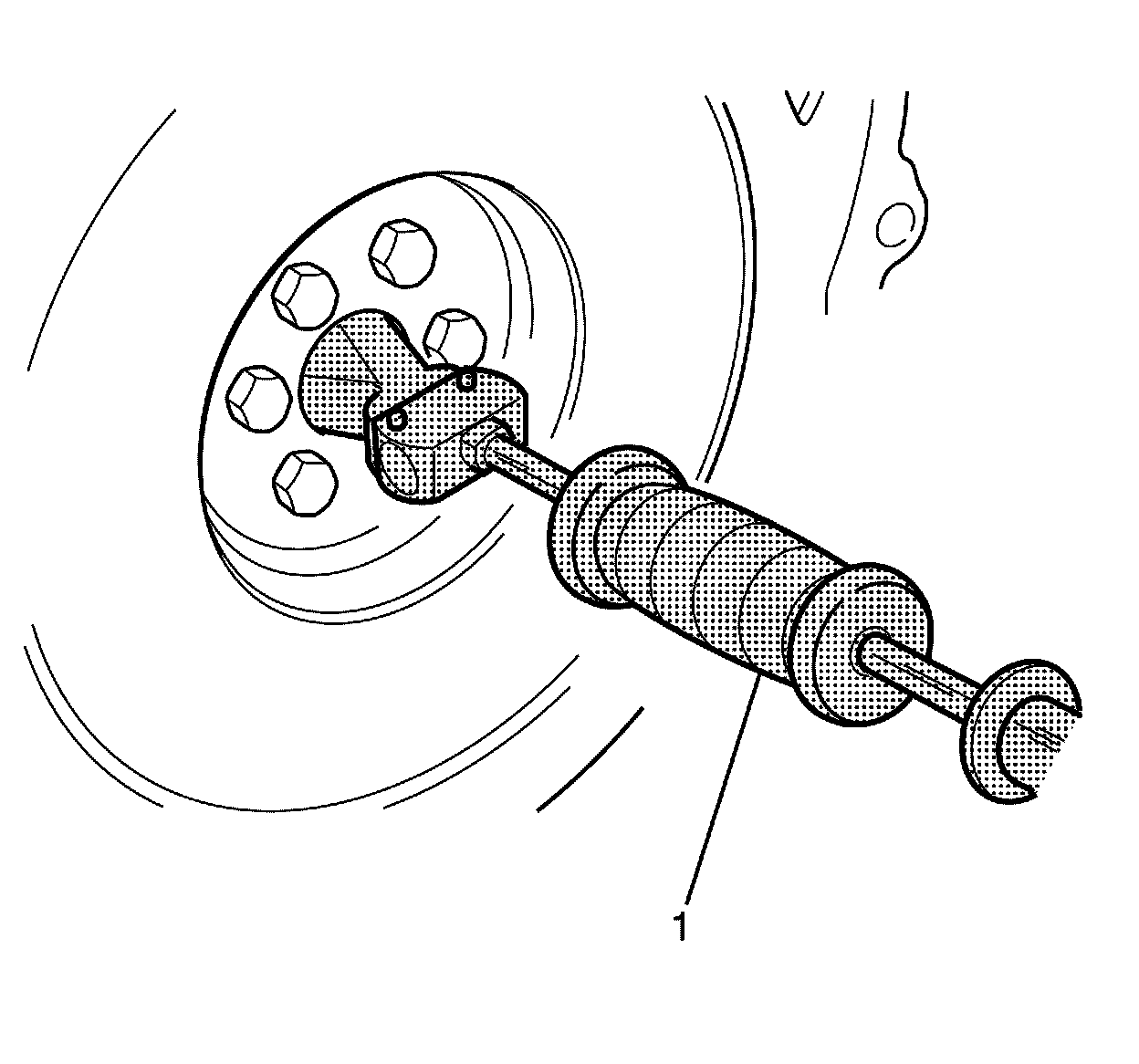 Remove the clutch pilot bearing, using the J 23907 (1).