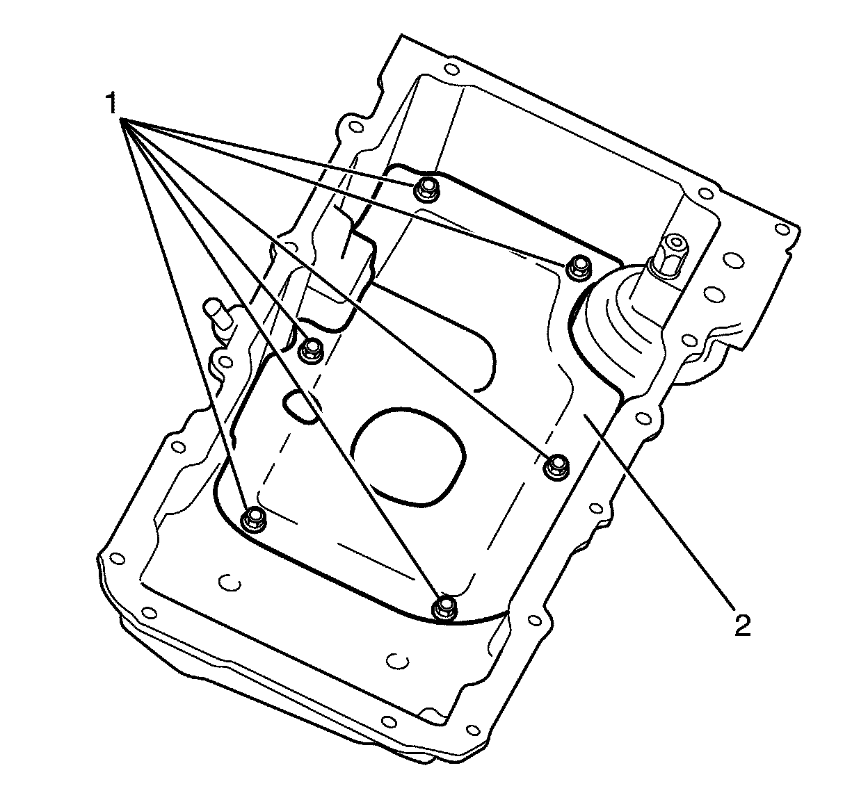 2. Remove the oil pan baffle to oil pan retaining bolts (1).