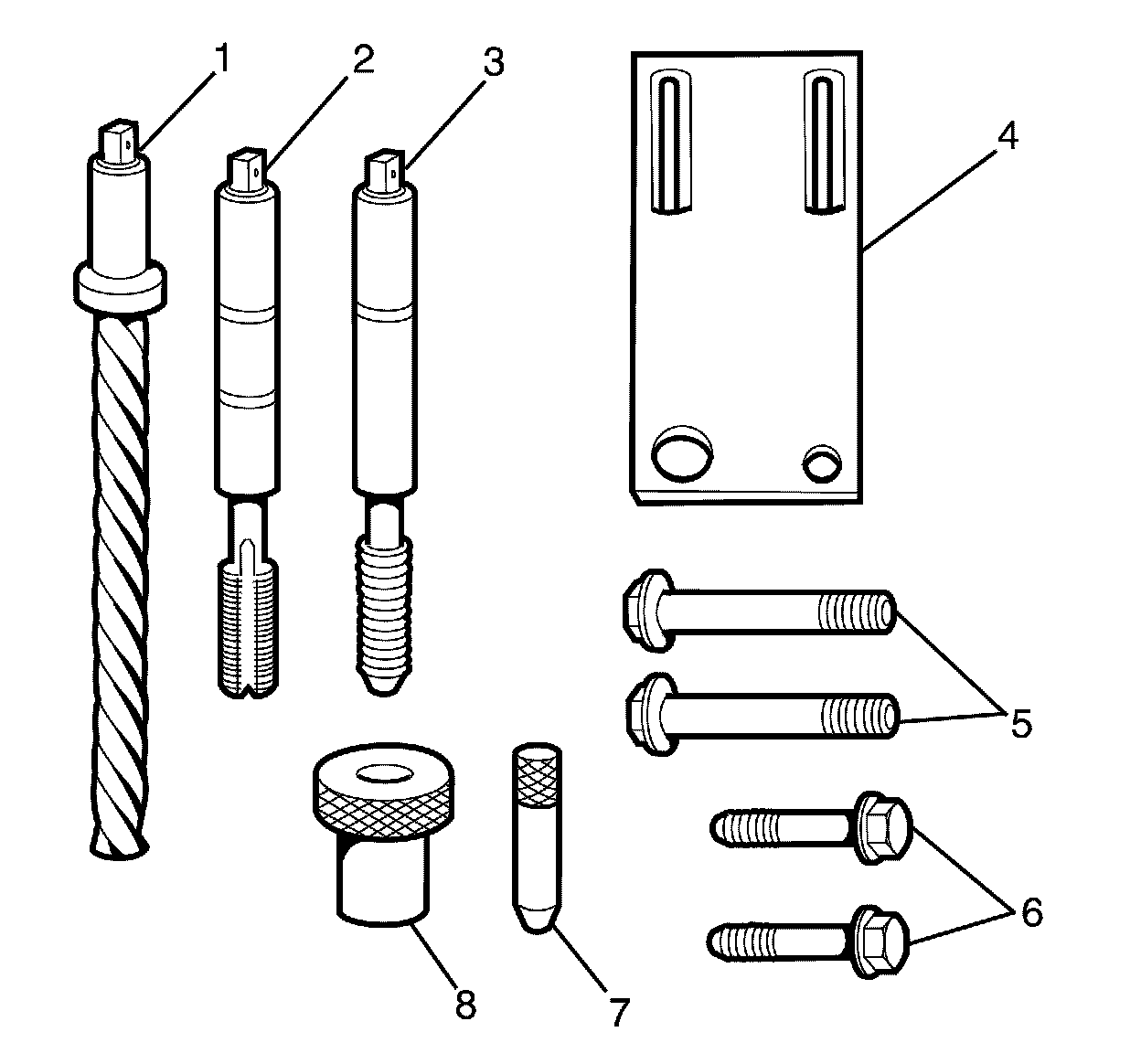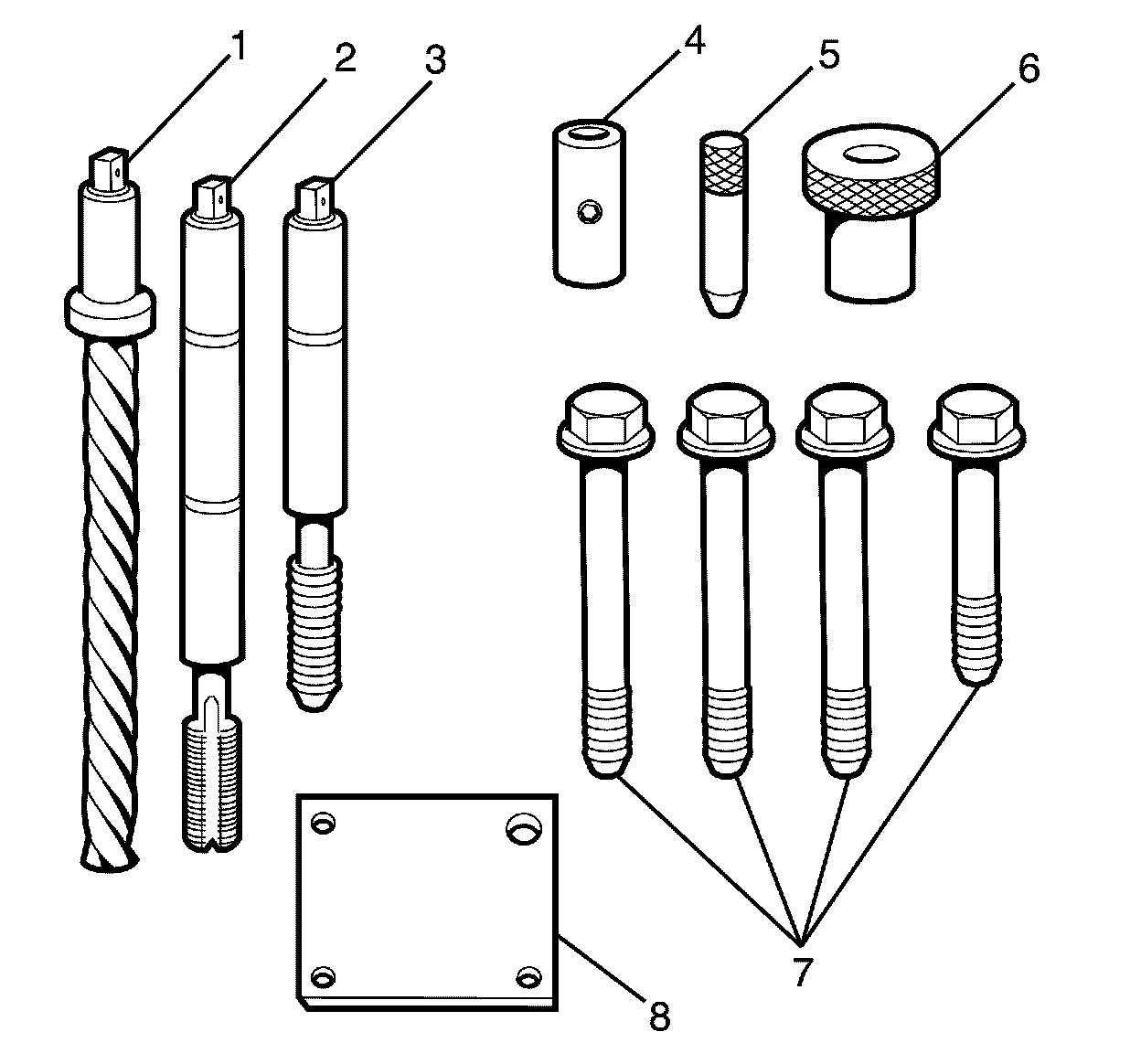 1. The cylinder head bolt hole thread repair kit consists of the following items: