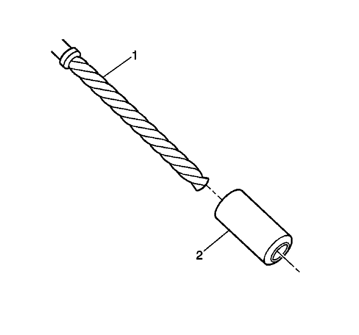 6. Install the sleeve (2) onto the drill (1).