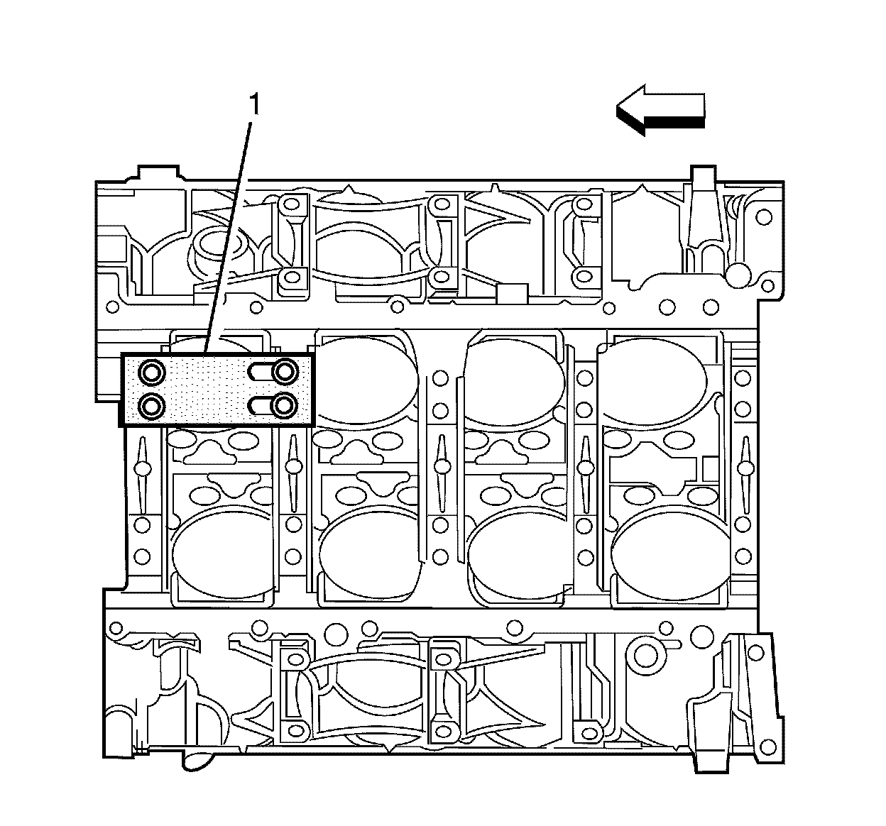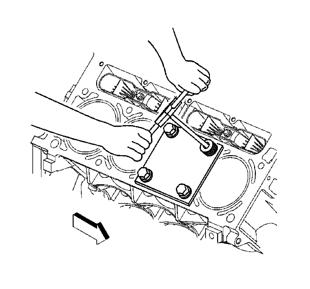 2. Install the fixture plate, bolt, and bushing onto the engine block.