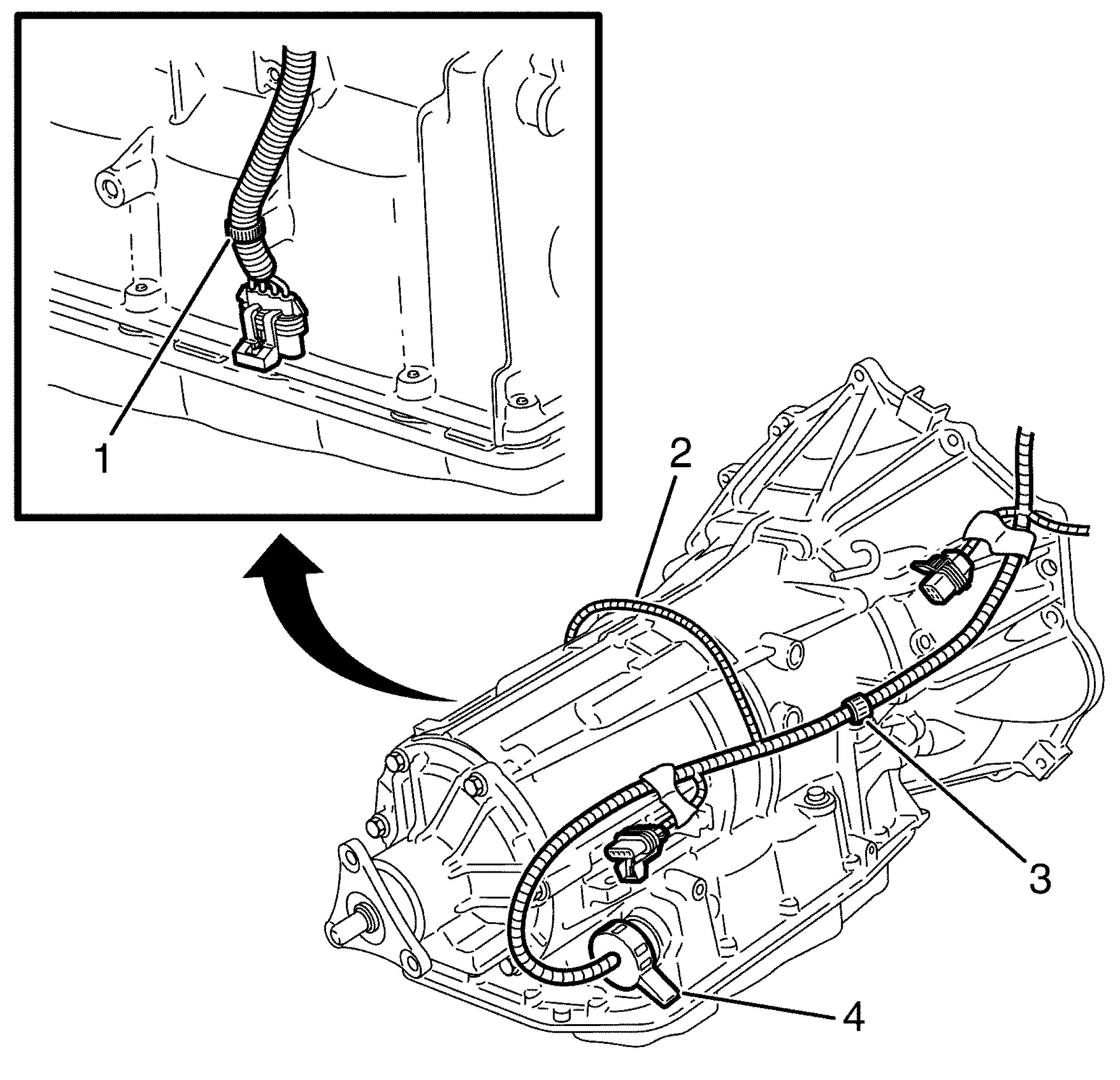 35. Connect the main transmission electrical connector (4).