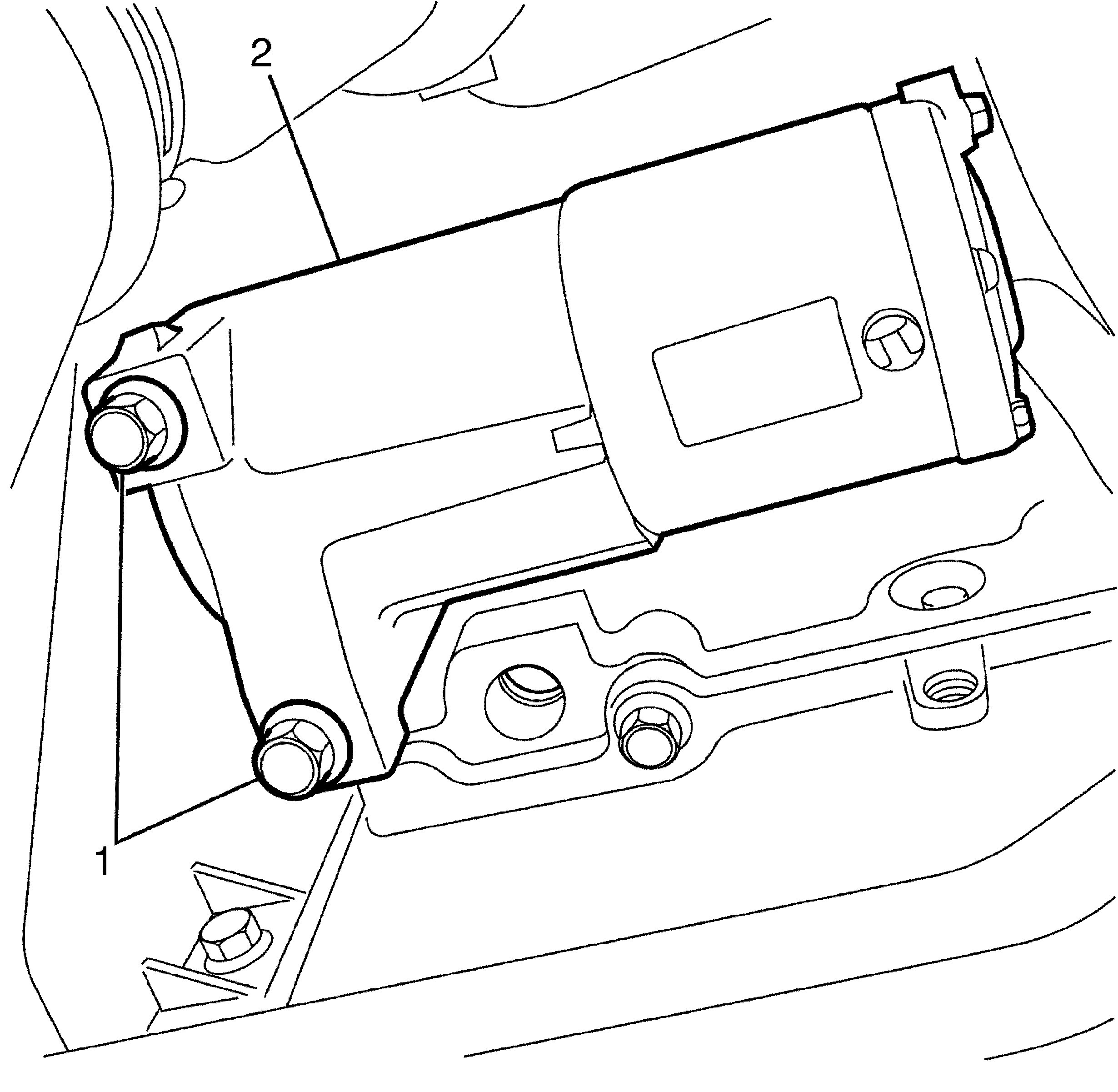 12. Install the power steering reservoir (2) to the power steering pump power steering reservoir bracket (1).