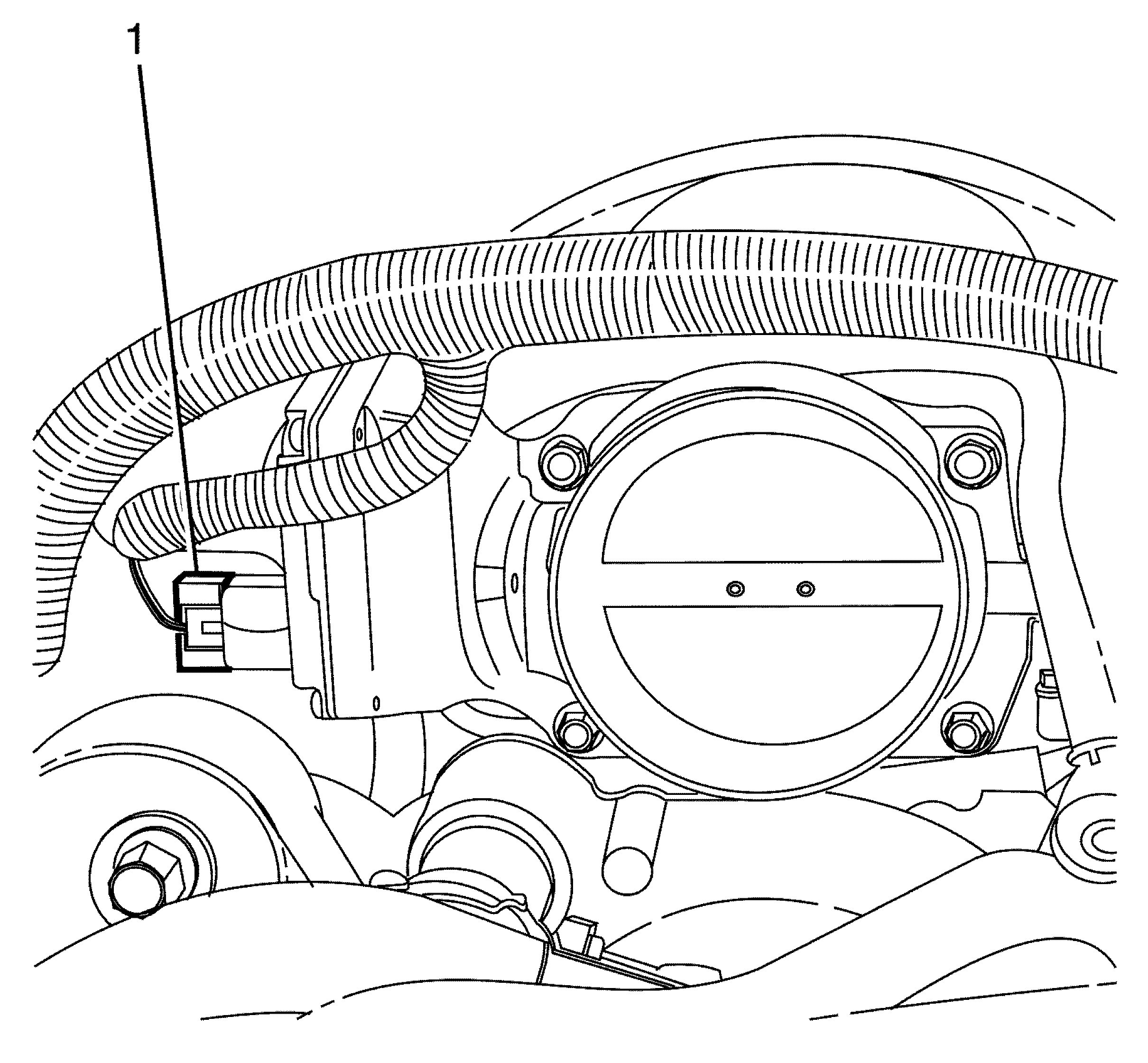 13. Connect the electronic throttle body wiring harness connector (1).