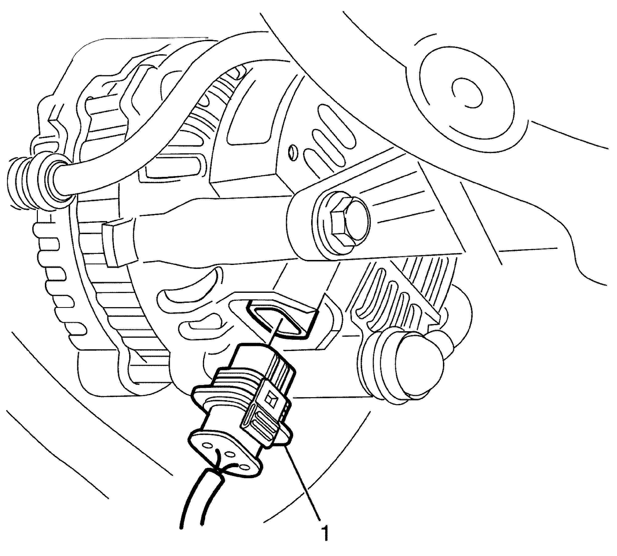 8. Connect the alternator electrical connector (1).