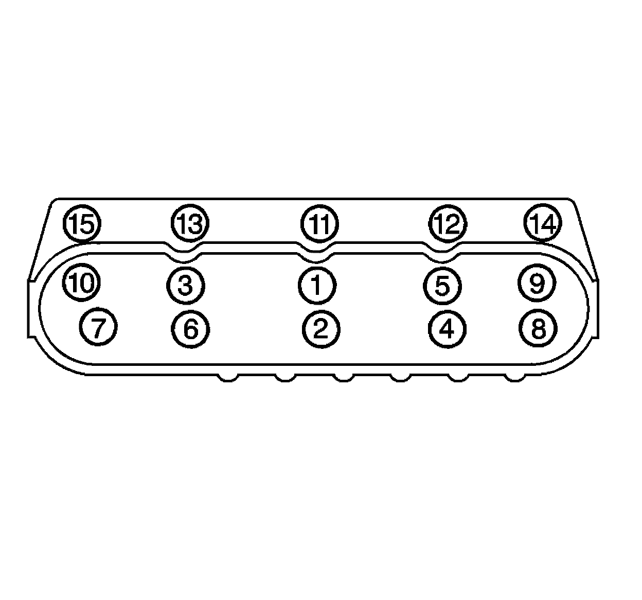 * Tighten the M8 cylinder head bolts (11-15) to 30 N.m (22 lb ft). Begin with the centre bolt (11) and alternating side-to-side, work outward tightening all of the bolts.