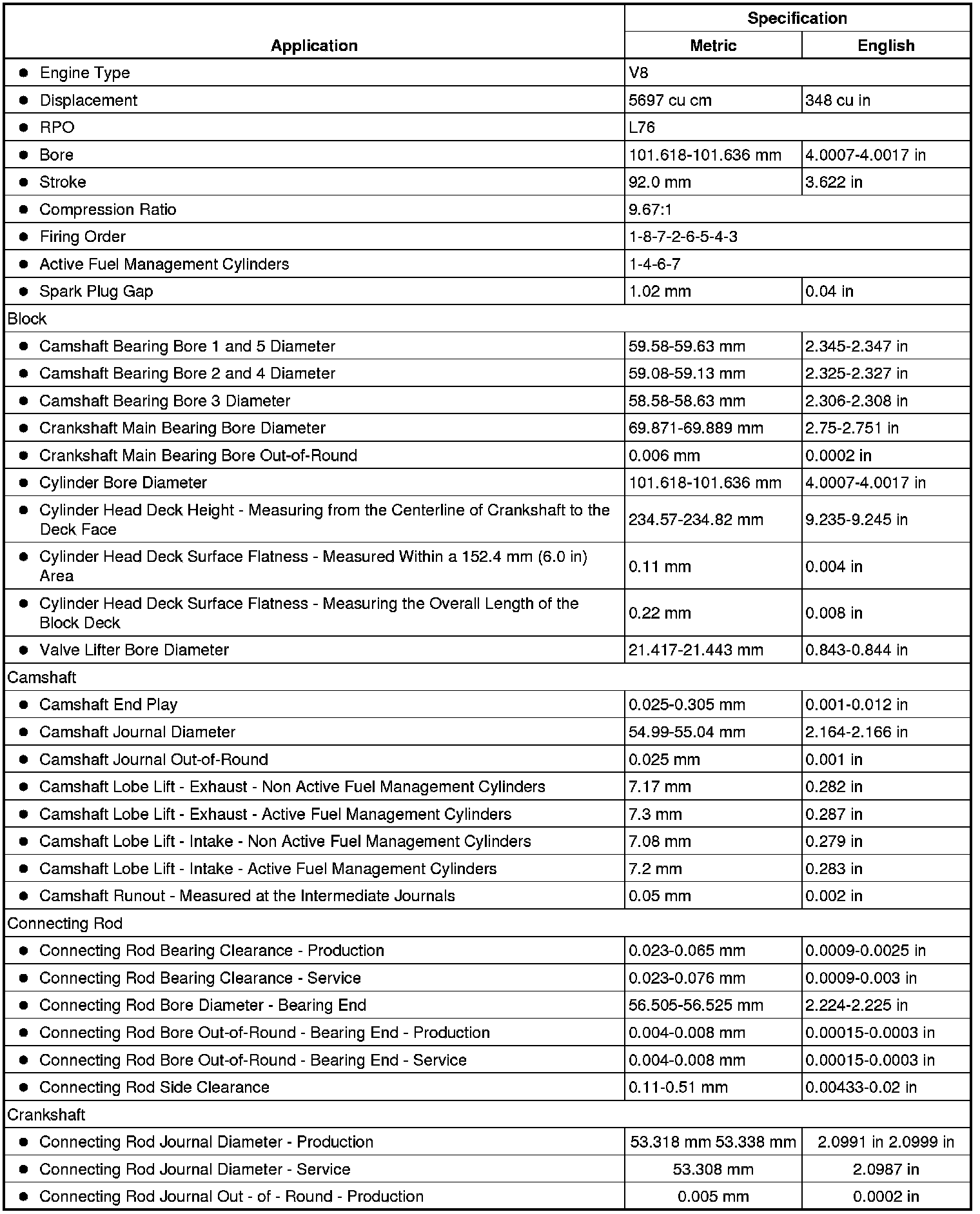 Engine Mechanical Specifications (L76 - Gas 8 Cyl, 6.0L SFI, V8)
