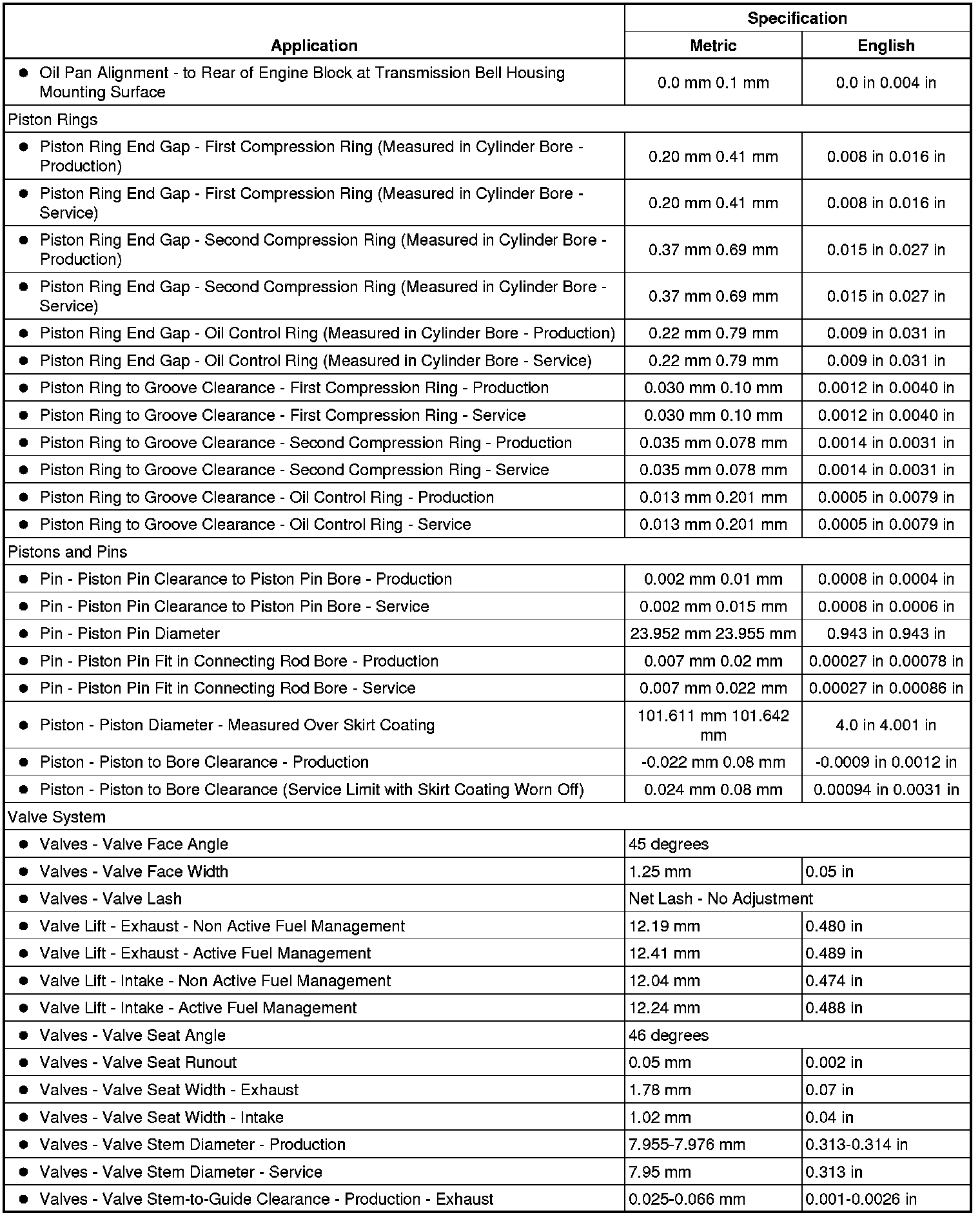 Engine Mechanical Specifications (RPO L76 VIN Y)