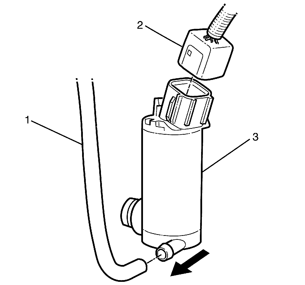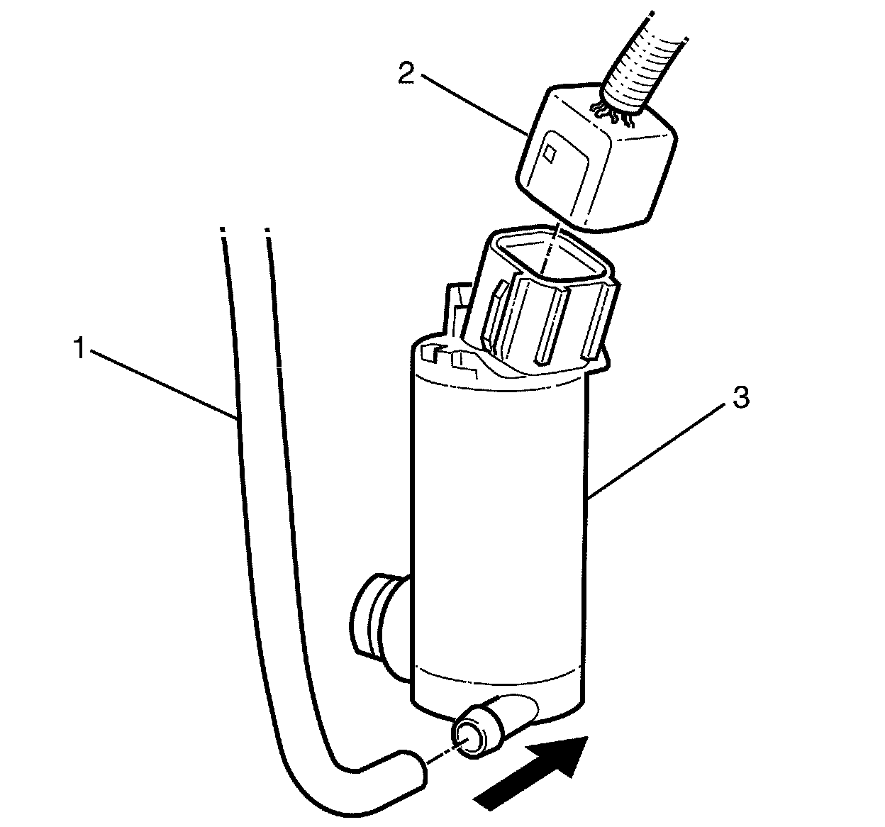 5. Remove the washer pump (3) from the washer solvent container.