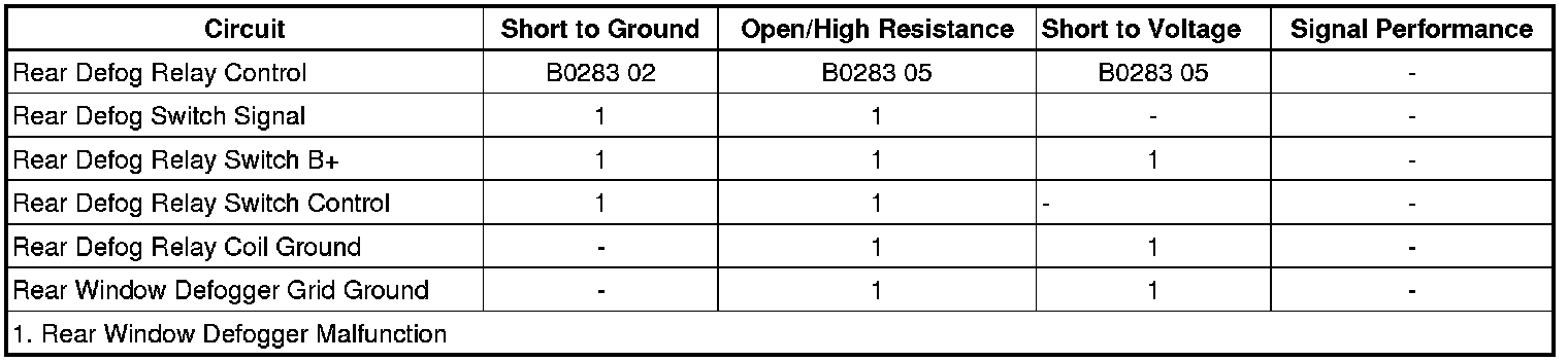 This DTC will set when the BCM detects a short to voltage or an open in the rear defog relay control circuits for 1 second or greater.