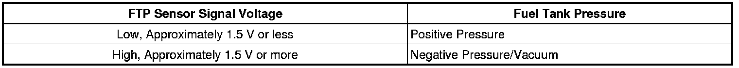 1. Ignition ON and fuel cap removed, verify that the FTP sensor parameter is between 1.3-1.7 volts.