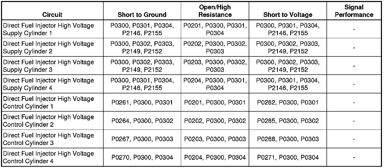 DTC P0201-P0204, P0261, P0262, P0264, P0265, P0267, P0268, P0270, P0271, P2146, P2149, P2152, or P2155