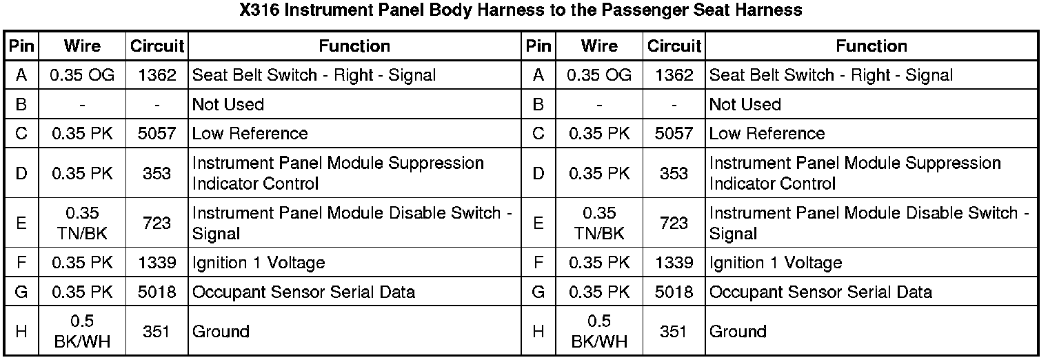 X316 Instrument Panel Body Harness to the Passenger Seat Harness