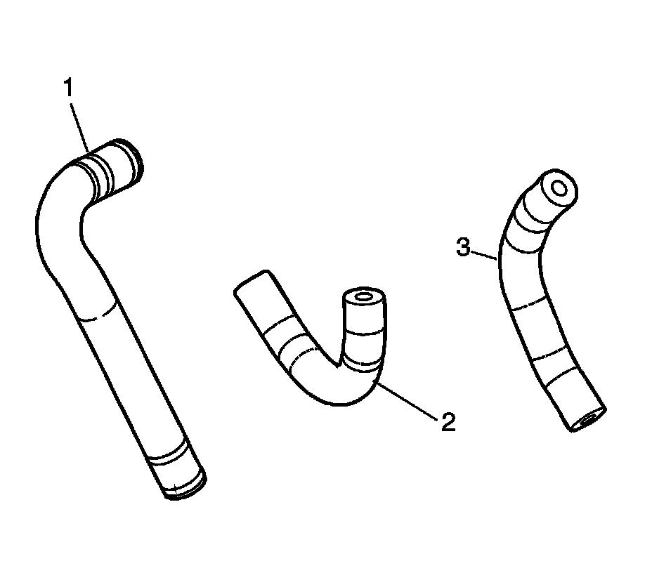 7. Inspect the turbocharger wastegate regulator solenoid hoses (1, 2, and 3) for damage. Replace the hoses if necessary.