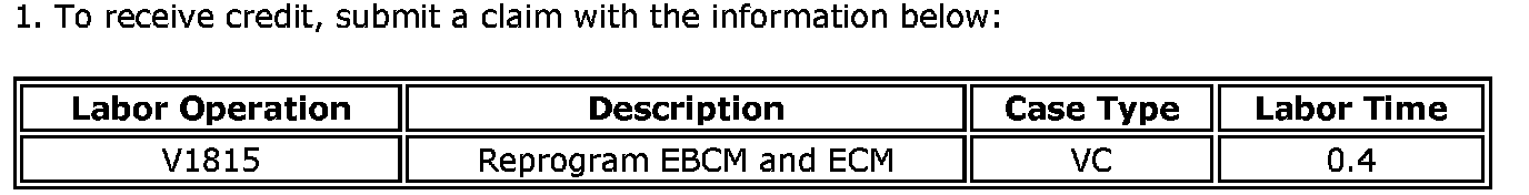 For vehicles repaired under this service update, use the table.