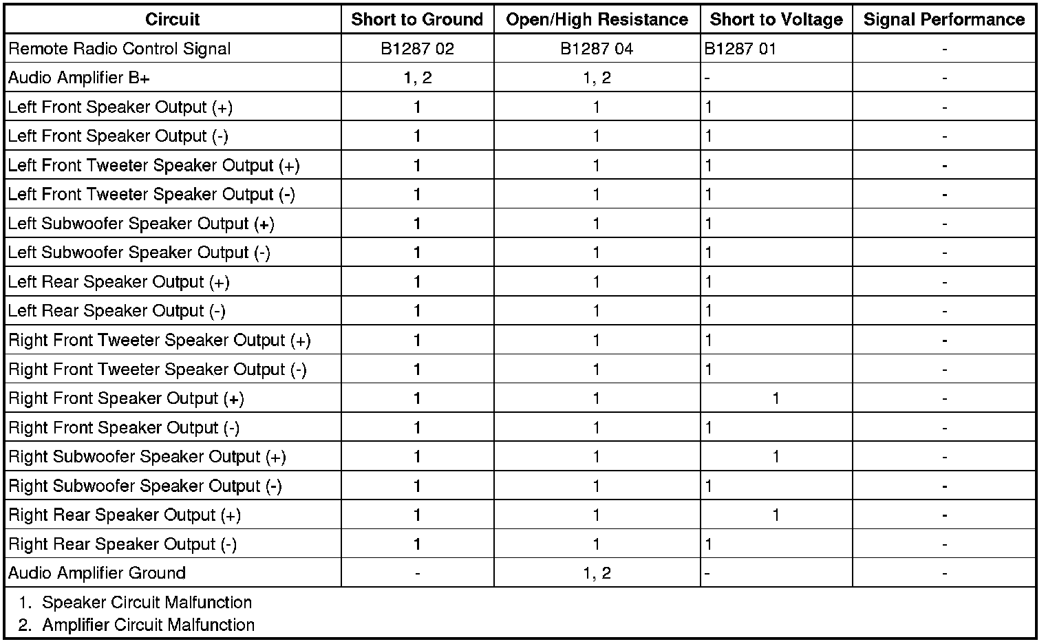 - Amplifier Control Signal Circuit Short to Battery