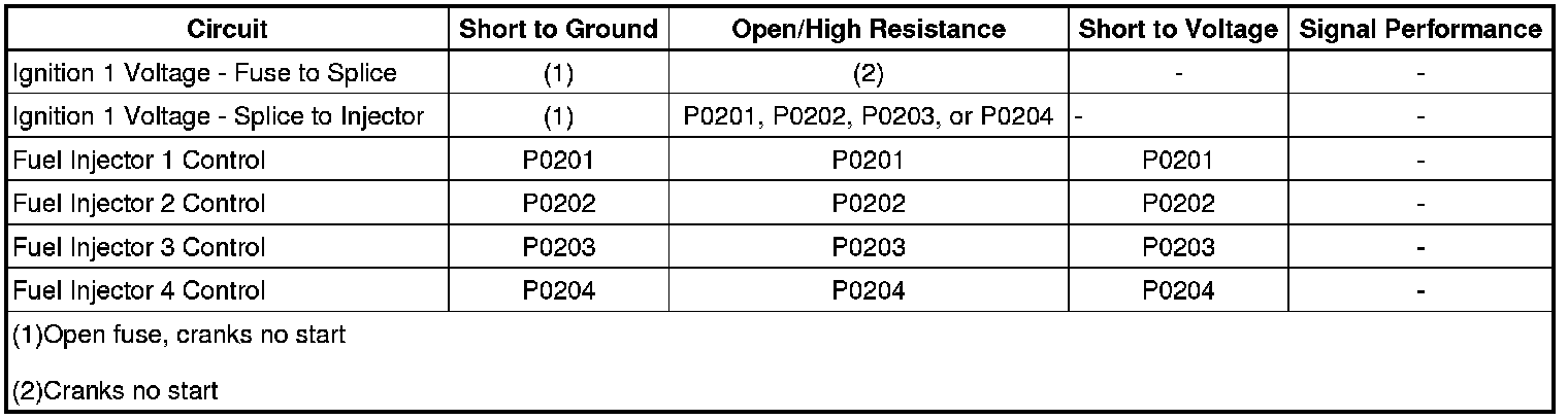 DTC P0201, P0202, P0203, or P0204