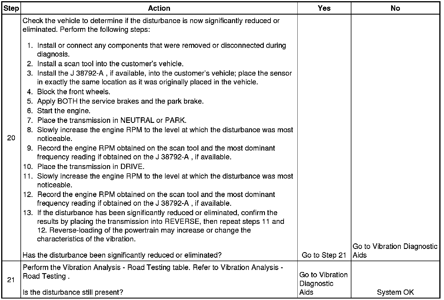 7. This step is designed to isolate the transmission from the engine to determine if the disturbance is related to the engine ONLY.