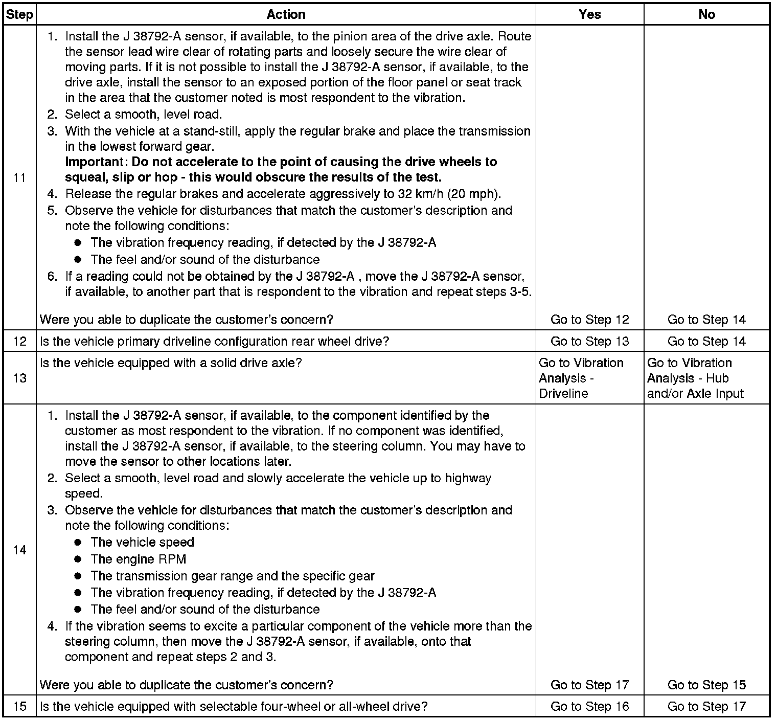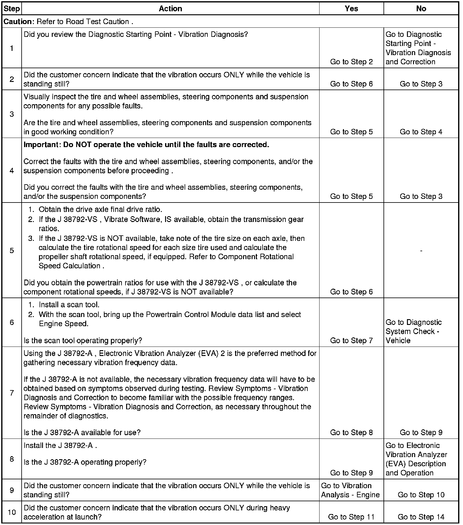 5. Obtaining rotational speed for the components rotating at tire/wheel speed is critical to systematically eliminating specific vehicle component groups. These component rotational speeds can be generated by using the J 38792-VS Vibrate Software, or through calculating them manually.