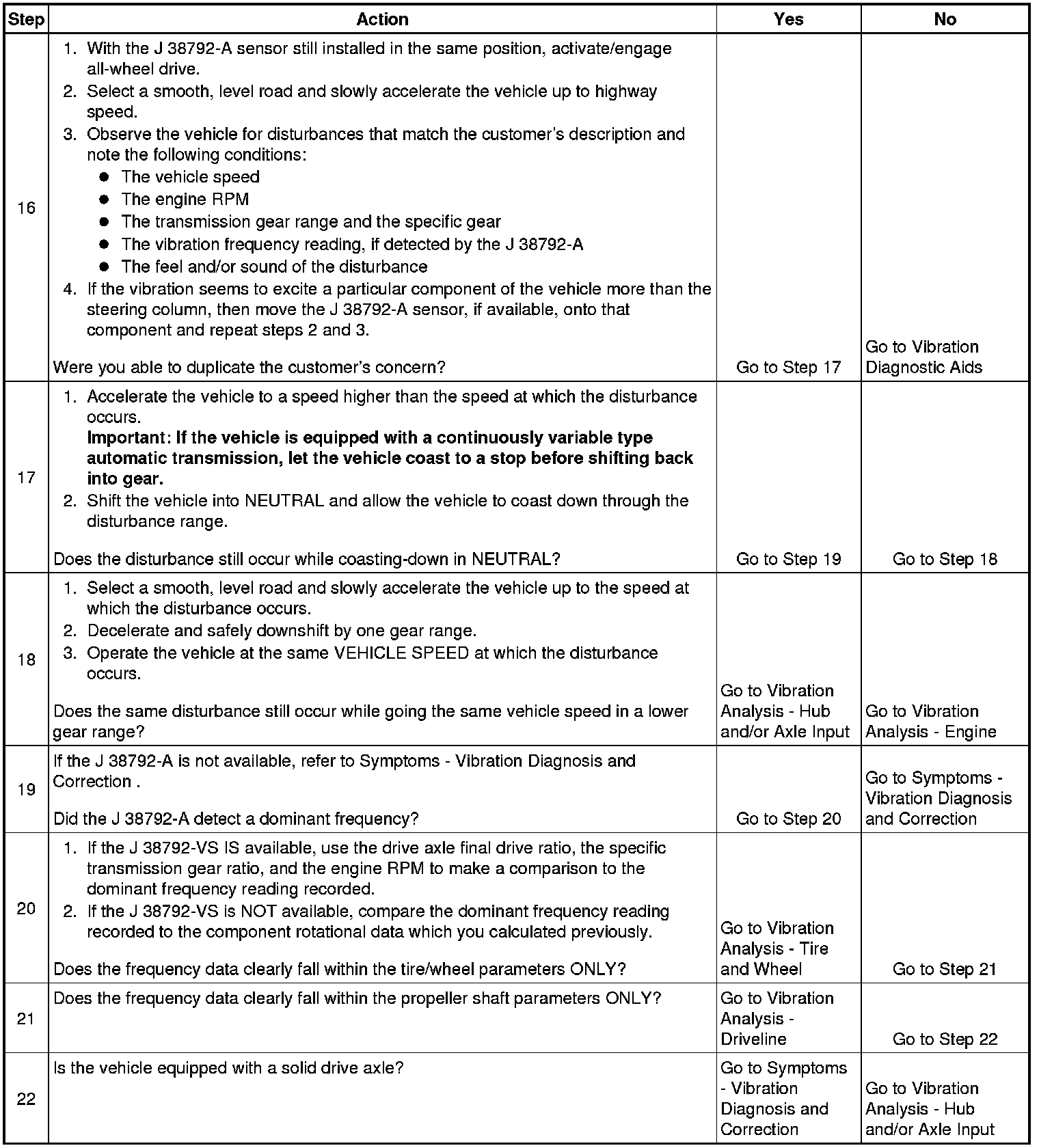 Important: Be certain to OBSERVE for disturbances that match the customer's description FIRST, then look at the J 38792-A frequency which corresponds with that disturbance.