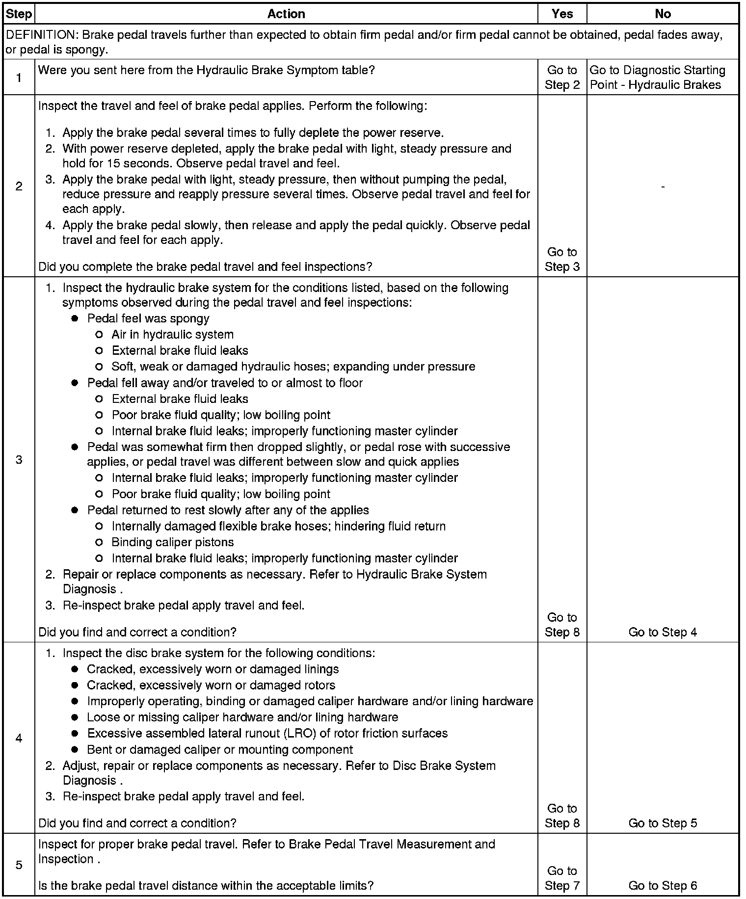 Brake Pedal Excessive Travel