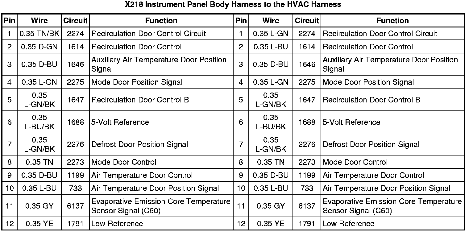 X218 Instrument Panel Body Harness to the HVAC Harness