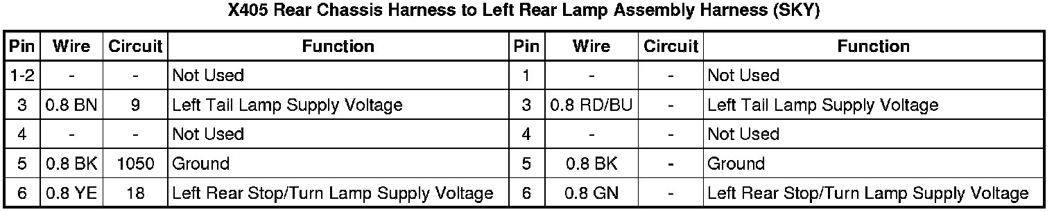 X405 Rear Chassis Harness to Left Rear Lamp Assembly Harness (SKY)