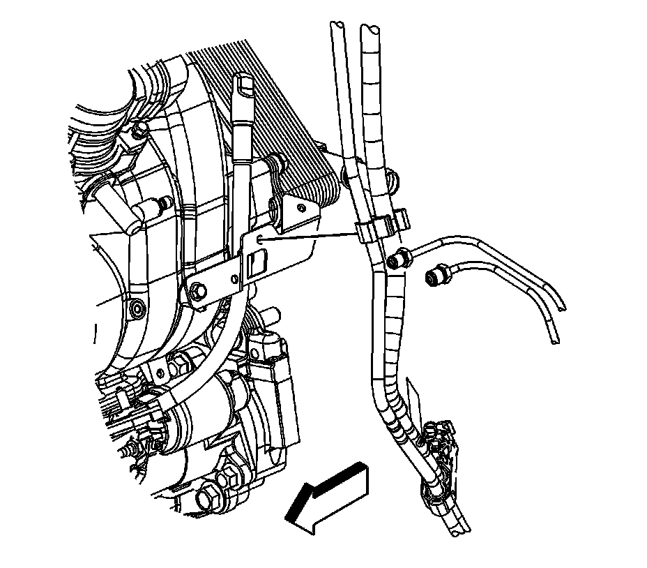 5. Remove the fuel feed and evaporative emission (EVAP) pipe clip from the oil level indicator tube bracket.