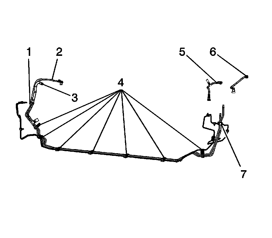 1. Install the fuel feed line (2) to the clips and close the clips (4 and 7).