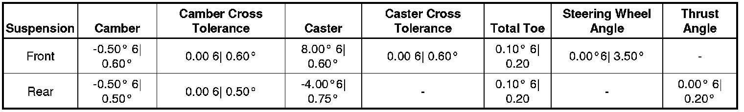 Wheel Alignment Specifications