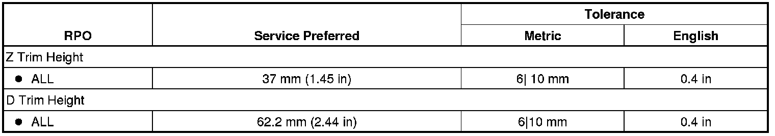 Trim Height Specifications