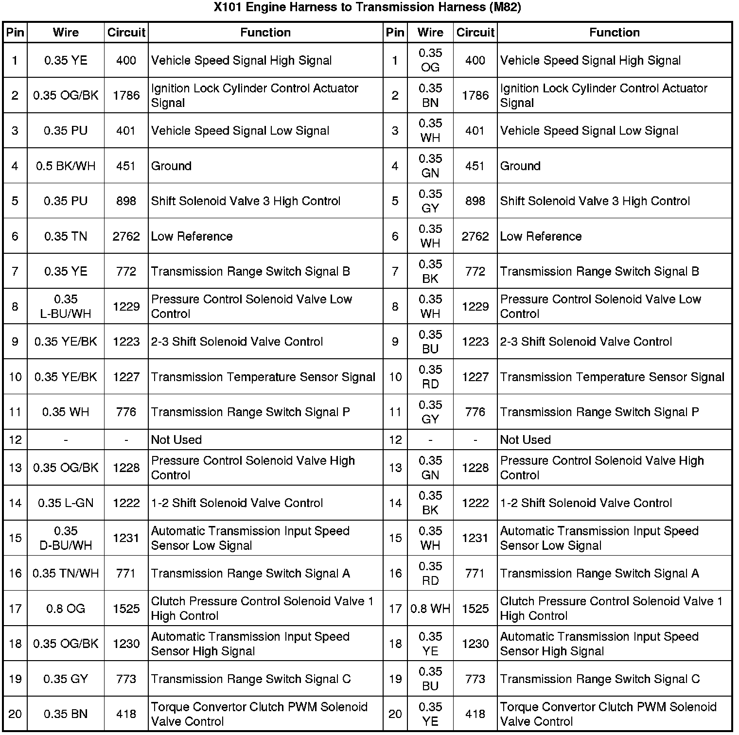 X101 Engine Harness to Transmission Harness (M82)
