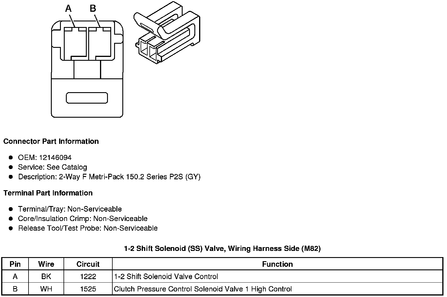 1-2 Shift Solenoid (SS) Valve, Wiring Harness Side (M82)