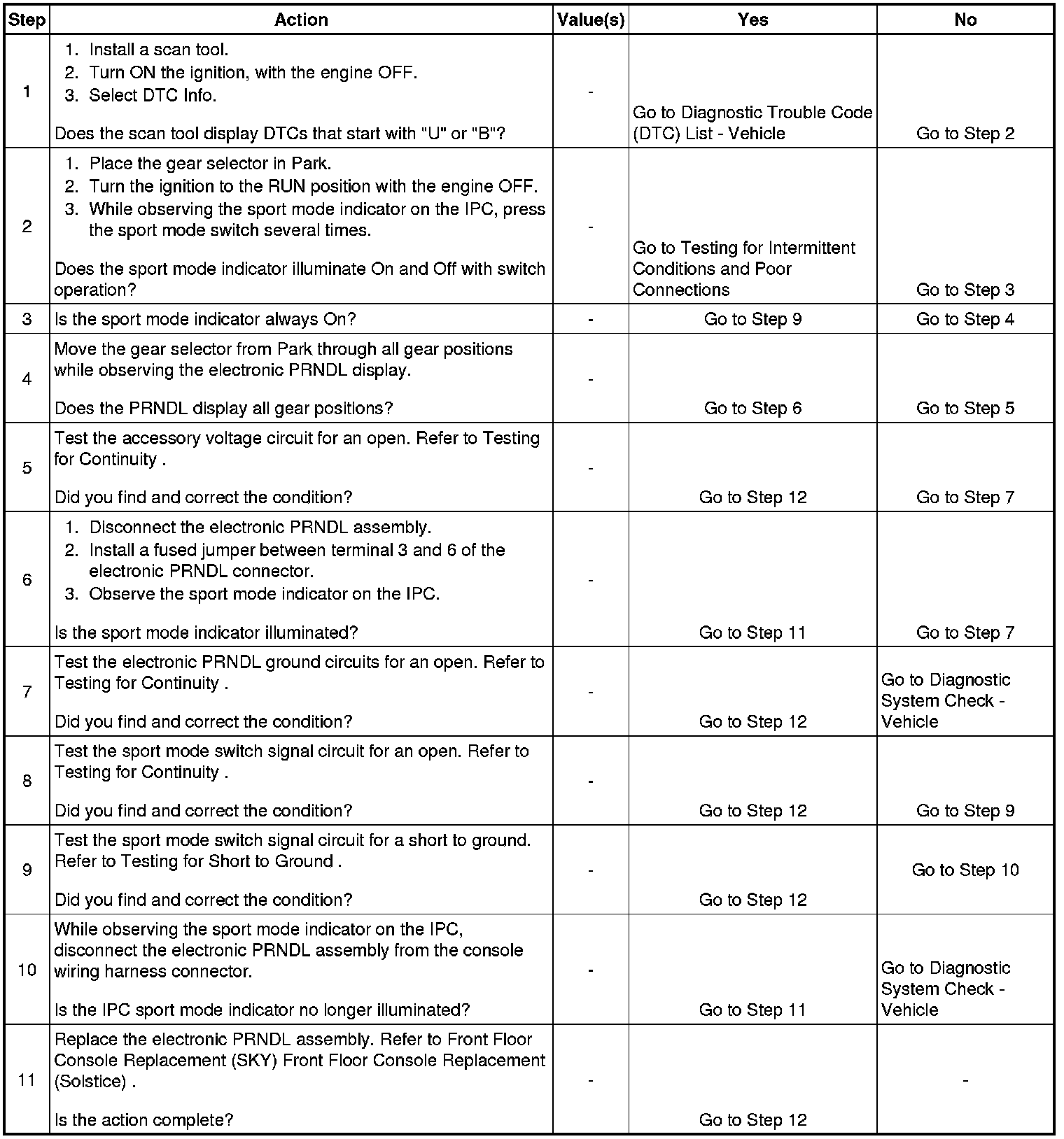 4. No PRNDL display could be open in the electronic PRNDL assembly accessory circuit.
