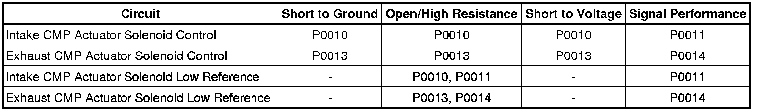 - Intake Camshaft Position (CMP) Actuator Solenoid Control Circuit