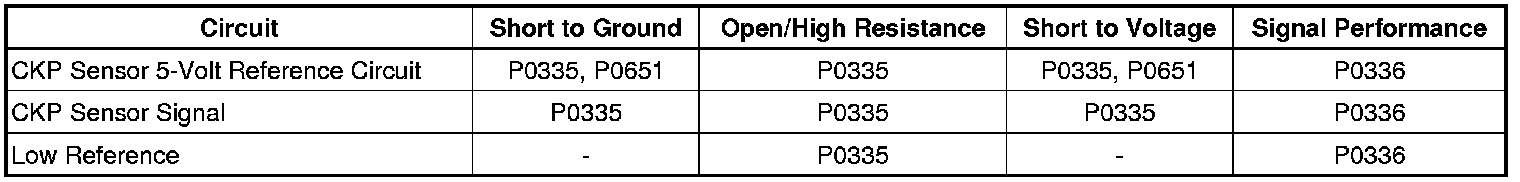 * The engine is operating and the ECM does not detect a CKP pulse for 10 seconds.
