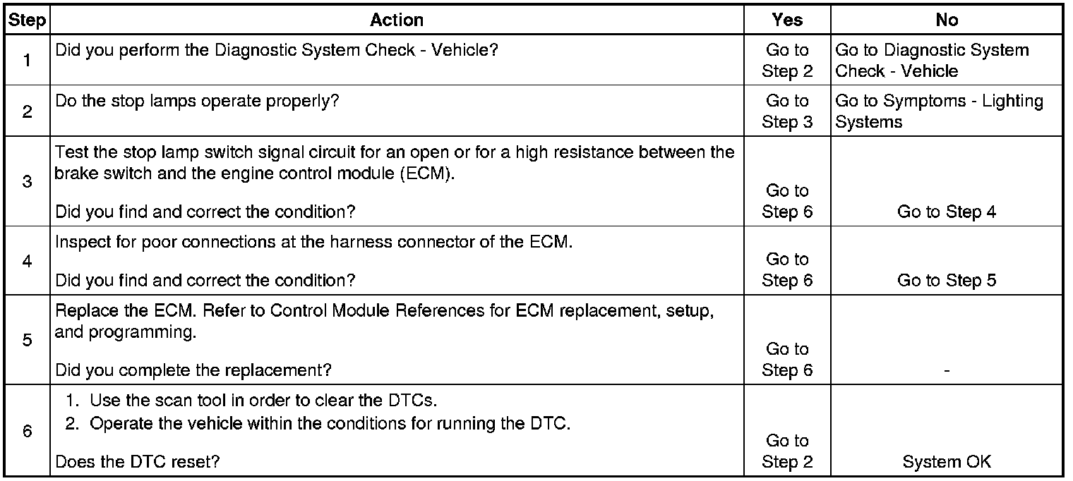 The stop lamp switch signal circuit is a direct hardwire input to the engine control module (ECM) from the brake switch assembly. The ECM monitors the stop lamp switch signal circuit in order to detect when the brake pedal has been applied.